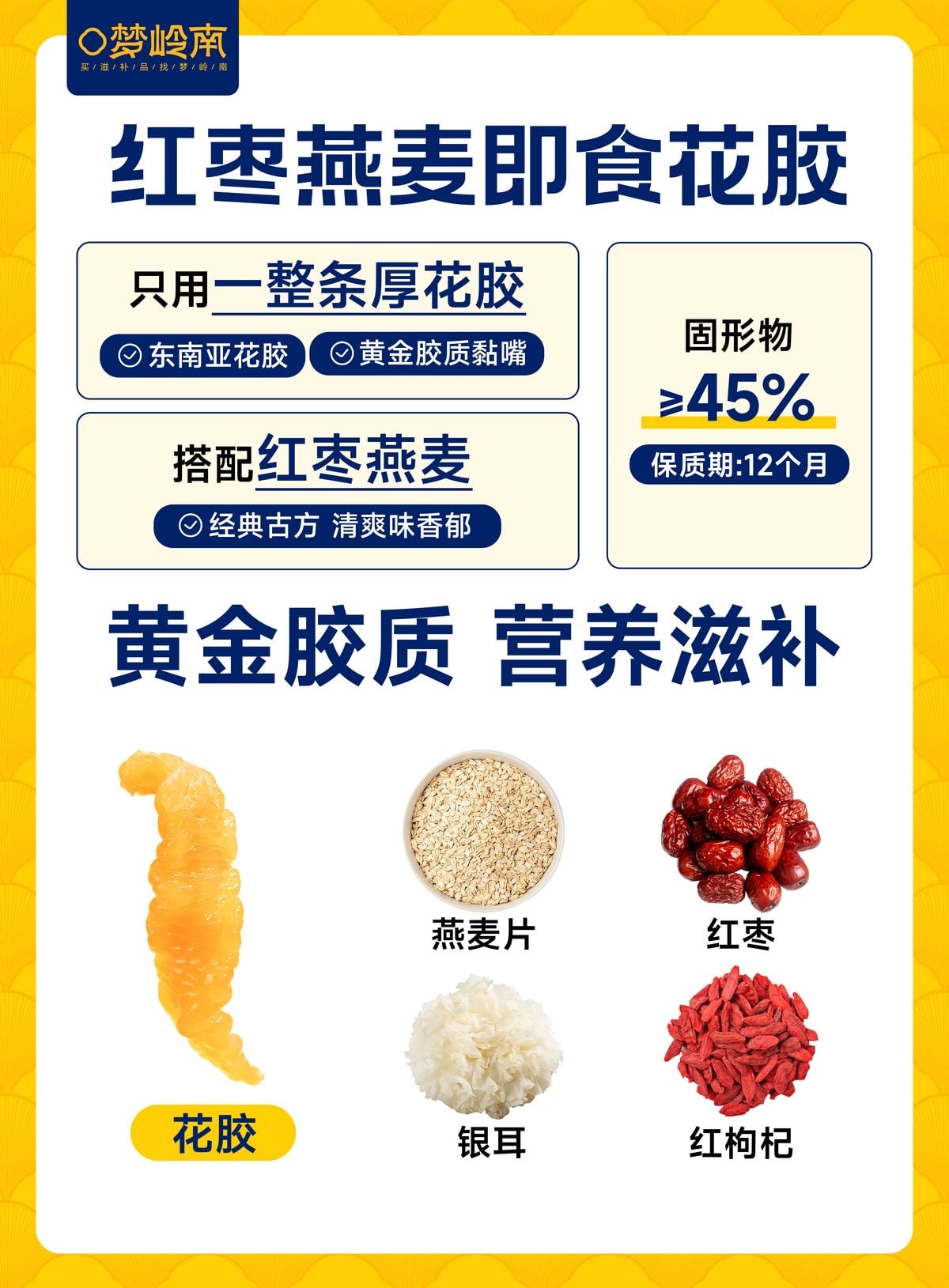 "1、花膠搭配紅棗、燕麥、銀耳、枸杞,這麼搭配非常好吃,還有滋補作用,並且配料表特別乾淨,只添加了少許冰糖調味,孕期哺乳期都可以放心去吃