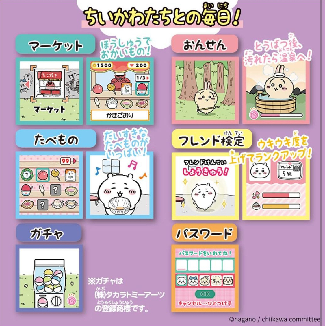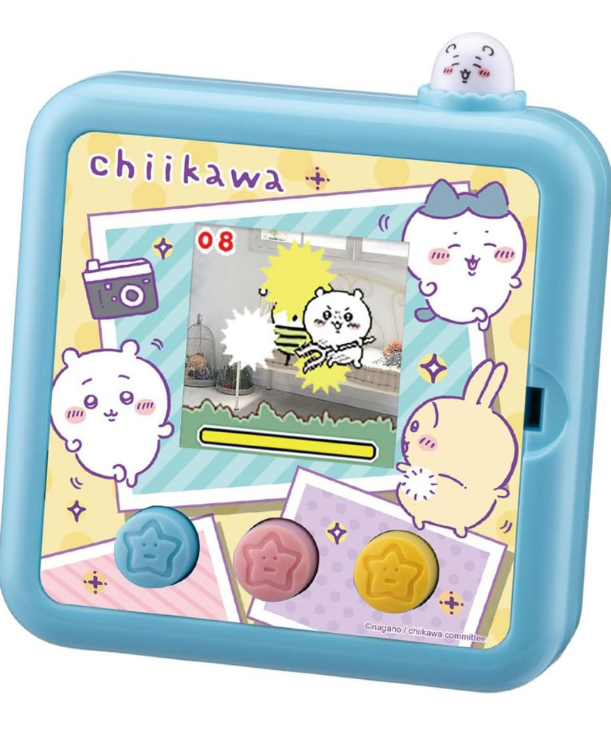 不僅是相機,更是互動遊戲機 Takara Tony Chiikawa AR 相機遊戲機不只滿足拍照需求,更提供了多種有趣的內建小遊戲,讓娛樂性加倍: 互動小遊戲:透過簡單直觀的操作,您可以與 Chiikawa 角色進行各種互動遊戲,例如餵食、照顧他們,或者參與一些考驗反應力的小挑戰。 電子寵物養成:透過日常互動和遊戲,您可以「飼養」自己的 Chiikawa,看著他們成長並解鎖新的驚喜。 收集元素:完成遊戲或達成特定條件可以解鎖隱藏角色、服裝或場景,大大增加了遊戲的耐玩性。 完美結合了時下最流行的 AR(擴增實境)技術與超人氣角色 Chiikawa 的魅力,為各年齡層的粉絲帶來前所未有的互動體驗。這款掌上型裝置不僅是相機,更是隨身的娛樂中心,讓您隨時隨地與 Chiikawa 和他的朋友們創造獨一無二的回憶。 虛實合一的拍照體驗:無論您是在公園、咖啡廳,還是家中的客廳,只需將鏡頭對準您想拍攝的地方,Chiikawa、Hachiware (小八貓/哈奇瓦爾) 和 Usagi (烏薩奇/兔兔) 就會以可愛的姿態「出現」在您的螢幕上。您可以調整他們的位置、大小和動作,輕鬆拍出彷彿他們真實存在於您身邊的有趣照片。 Chiikawa角色會出現在你的房子裡,敵人也會出現在你的房間裡。玩相機的方式有很多種! 左右、上下傾斜設備,享受角色的可愛動作和聲音♪ 提升您的玩樂程度,爭取在好友認證測驗中達到 1 級! #平行進口產品不設保養 只提供七天內有壞換貨 尺寸(約):H140 x W160 x D40mm 使用電池:3 顆 AAA 電池(另售) 重量(約):157g 材質: 機身:PC、ABS 透明蓋、鏡頭蓋:PC 雙面 Kisekae 片:PP