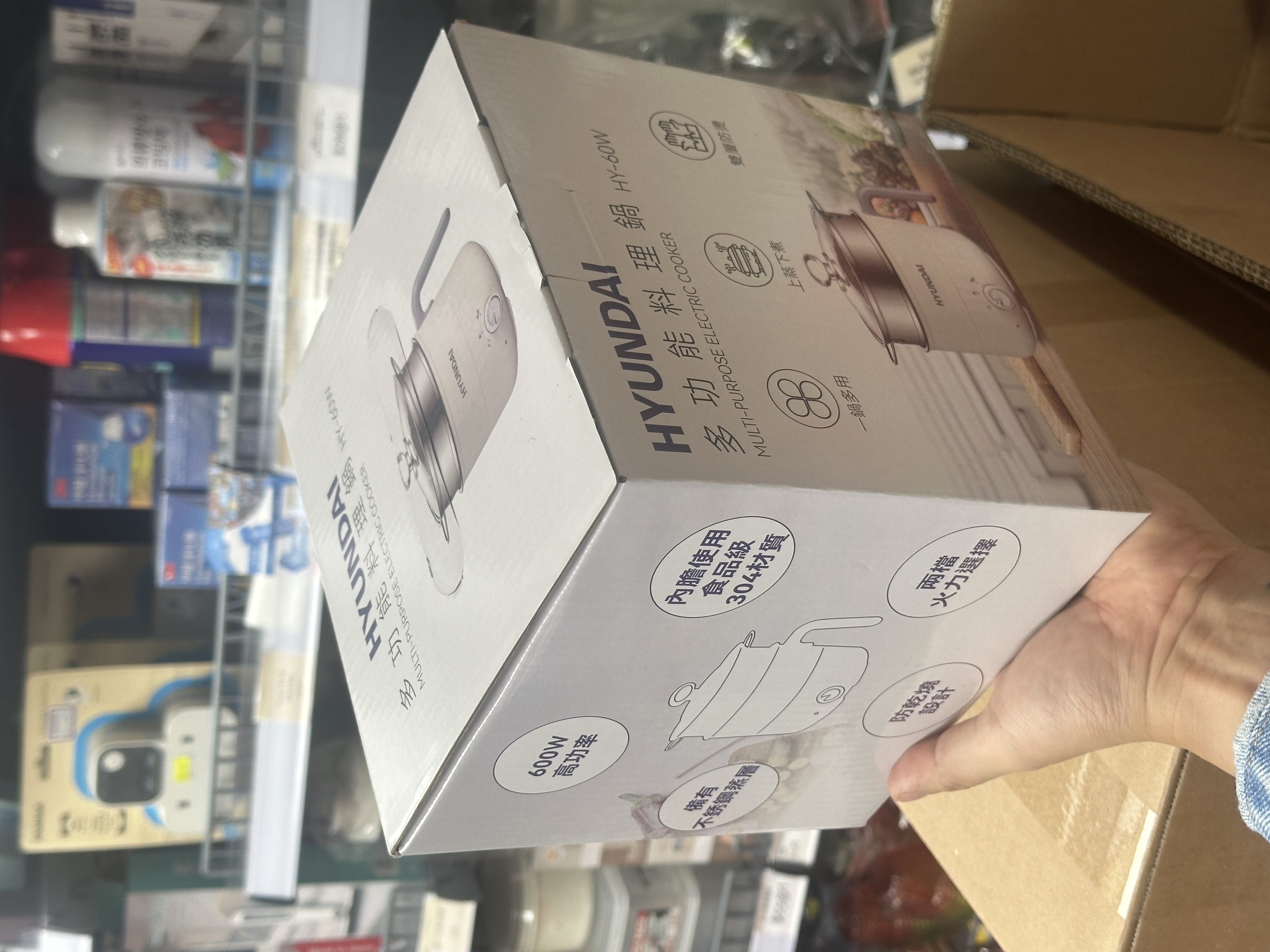 1.5L *600W高功率 *內膽使用食品級304 *備有不銹鋼蒸層 *兩檔火力選擇 *防乾燒設計 產品規格Specification 功率Power:600W 電壓Voltage:220V~ 頻率Frequency:50Hz 容量Capacity:1.5L 尺寸Size:170(長L) x 170(闊W) x 213 (高H) mm 重量Weight:0.65kg 配件Accessory: 蒸層Steamer