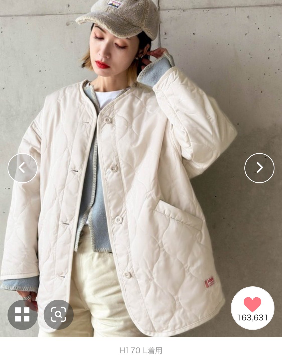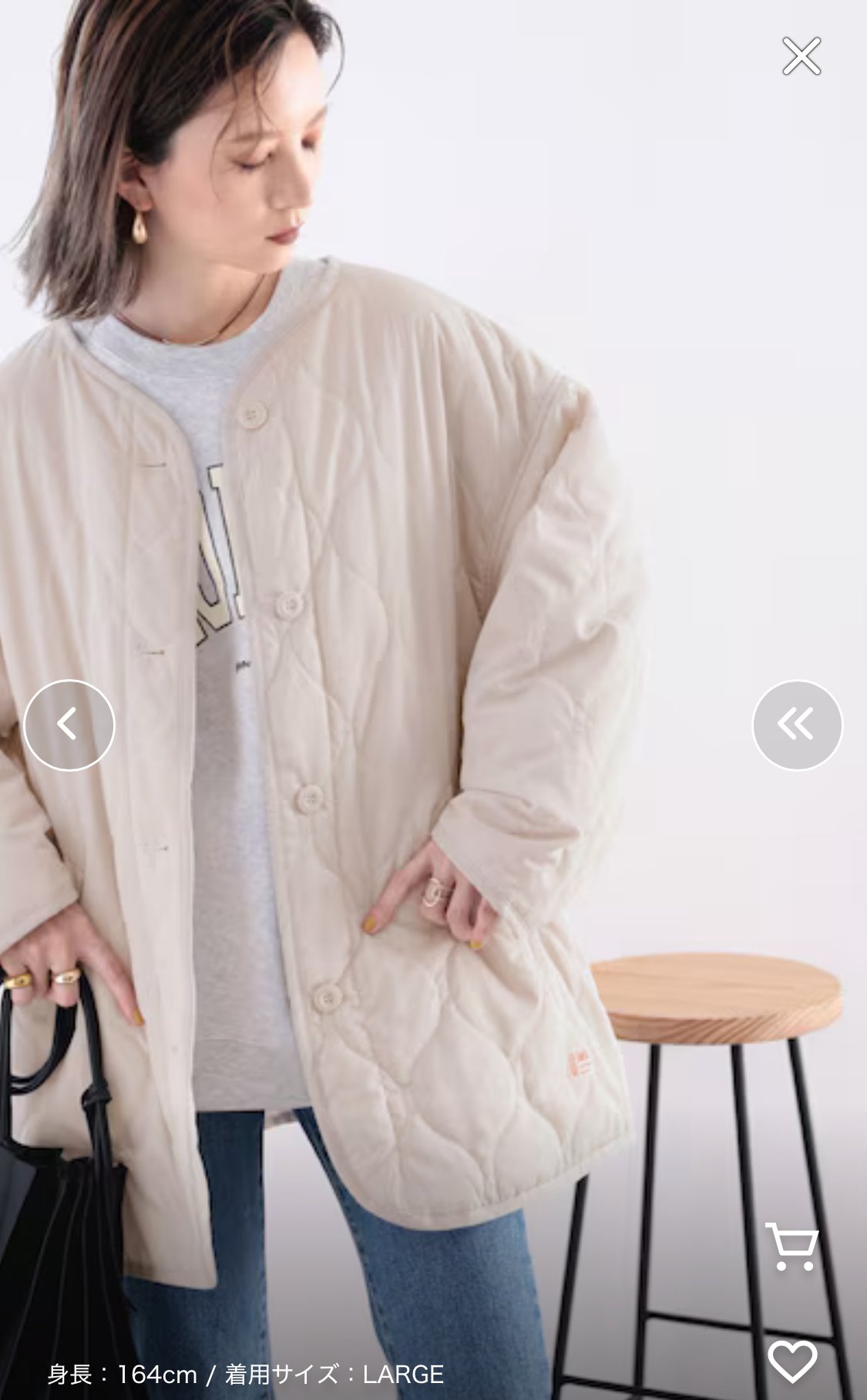 可以隨便披上的成人優雅的外套的絎縫大衣。 在各種季節都很有用的女士絎縫無領夾克登場! 簡單的設計,和任何搭配都很搭。 ■點 ・隱藏到臀部的長度感,遮蓋體型效果極佳 ・使用中棉,冬天自不必說,適合早春的早晚防寒。 ・潮流的超大尺寸 ■細節 波浪形的絎縫營造出成熟的女性氣質。 絕妙的超大尺寸和恰到好處的厚度,可以輕而易舉地披在身上是其魅力所在。 解開領子穿的話,會有一種很舒適的感覺,是適合各種搭配的夾克。 ■工廠 波浪形的絎縫,光是穿著就增加了舒適感。 ※做得比較大。 請確認尺寸規格。 ■協調 平時的牛仔布自不必說,和針織褲和喇叭褲也很搭◎ 和喇叭裙或連衣裙搭配的話,會增添女性氣質的搭配。 和平時的運動衫和針織衫搭配起來很簡單。 氣溫不穩定的時期,也推薦穿薄上衣+一件這個出門。 用帆布手提包或彩色包改變表情也很有趣。 絕妙的長度感,與長衫和迷你裙也很搭◎ 作為早春也能使用的輕薄外套,是很容易穿的單品。