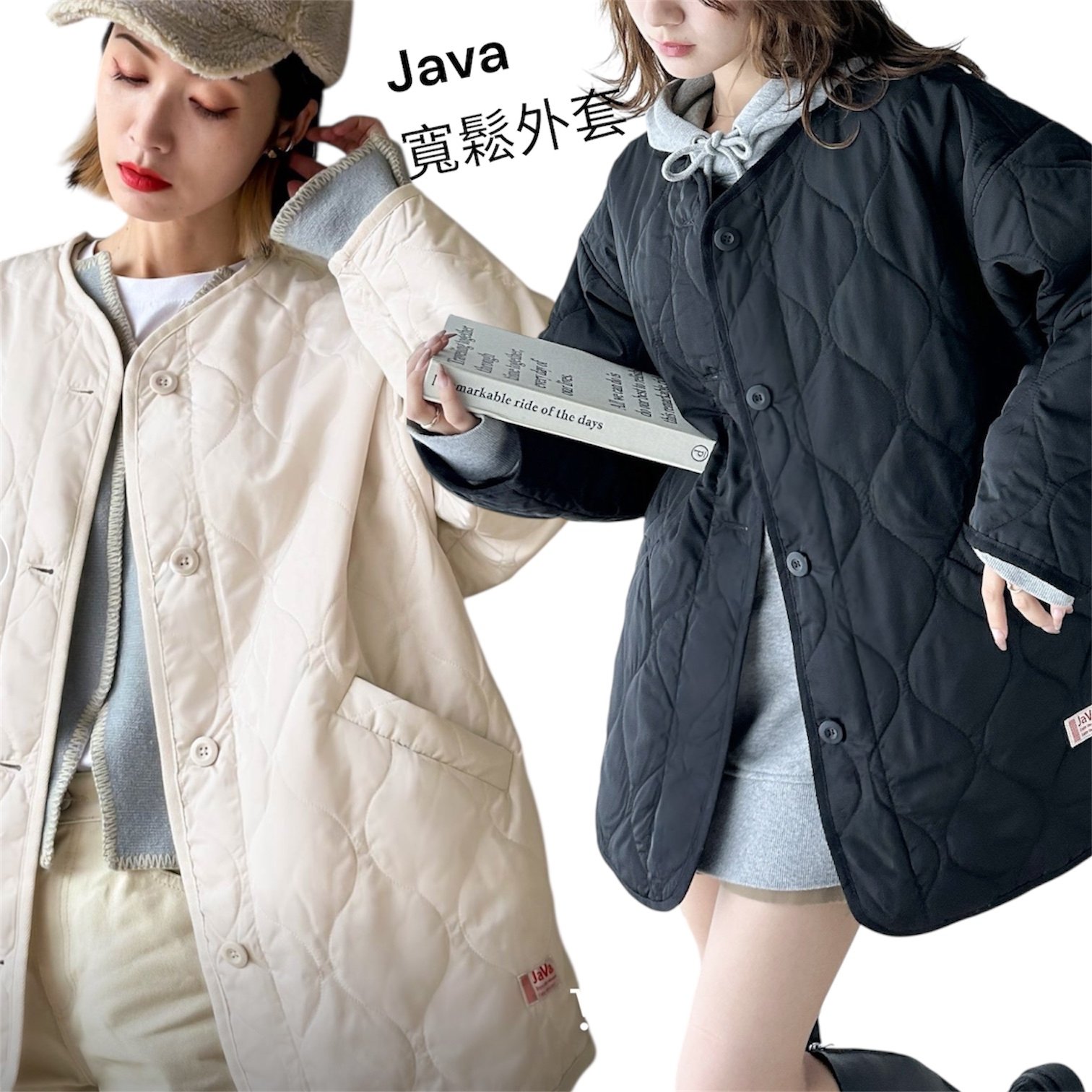 JaVa 無領寬鬆絎縫大衣