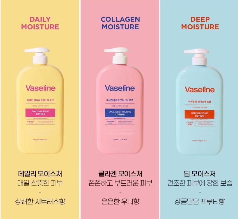 💗 *膠原蛋白保濕乳液(粉紅色)* 適合希望肌膚緊緻光滑的人使用 🧴 ✨ 含膠原蛋白,補充肌膚水分,使肌膚柔嫩光滑 ✨ 增加保濕度,防止肌膚乾燥 ✨ 散發柔和木質香氣,清新又奢華 💦 *深層保濕乳液(藍色)* 適合乾性肌膚或需要深層補水的肌膚 ✨ 深層滋潤肌膚,補充水分 ✨ 改善暗沉與細紋,使肌膚柔嫩光滑 ✨ 清新果香,提神醒膚,舒緩疲勞 🌼 *日常保濕乳液(黃色)* 適合每日使用,保持肌膚水潤柔嫩 ✨ 維持肌膚柔軟,帶來清新感受 ✨ 含天然花萃與維他命E,滋養肌膚 ✨ 清新香氣 --- 🧴 **容量:**1000ml ✅ 100% 韓國原裝產品 ✅ 可於早晚使用